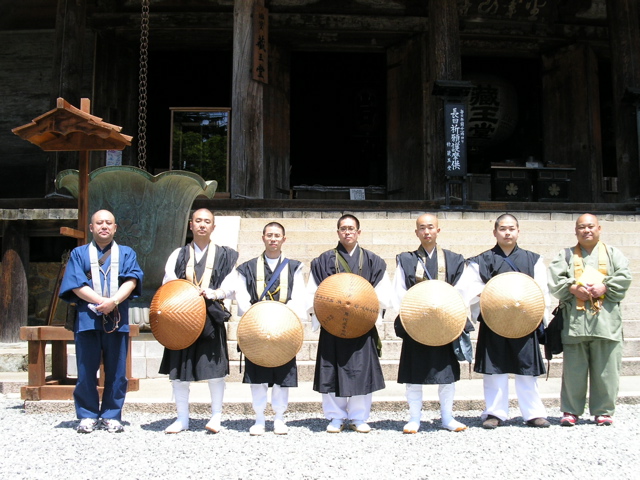 お大師さまが、お書きになられた文章に憧れ、吉野山へ進路を取った。今年二月、四国のお遍路に付いて学ぼうと、備中青年教師会がお招きした阿闍梨浅井證善僧正の「霊力は道にあり」というお言葉が、我々を導く。若きお大師さまが歩まれた道を、同じように歩かせて頂くことによって得られる何か、それを求める追体験の旅である。曼浄衣に網代笠、錫杖、手甲脚絆に地下足袋という出で立ちの行者が会長を筆頭に5名、補助隊員としてOB2名、カメラマン1名の協力も得た。